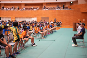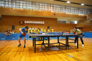 静岡県内の小中学生の卓球経験者、約80名が実技指導に参加してくれました。