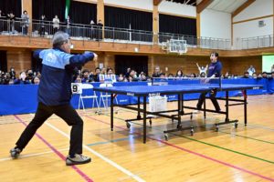 おなじみの1球チャレンジコーナーでは、町長が挑戦。本気サーブを見事返球し、会場は大盛り上がり!